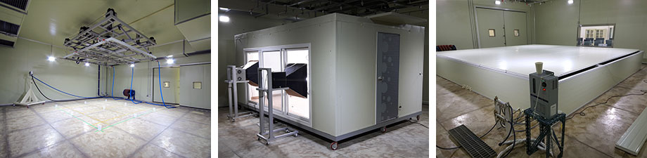 내부 표면 결로 시험, 단열성능평가, 거주성능 평가, 에너지 소요량 평가, 내/외부 복사실험, 열순환 실험, 모듈러주택(공업화주택) 환경시험
