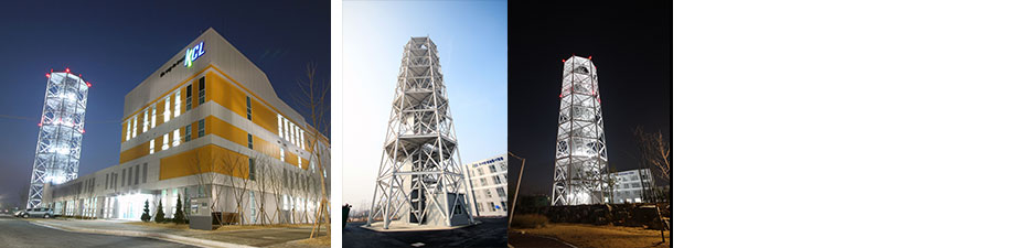 고층환경하에서의 건물외피의 옥외 실증시험, 배관/덕트의 소음진동시험, 콘크리트 압송 시 재료분리 평가 등이 간으한 60m 높이로 구성